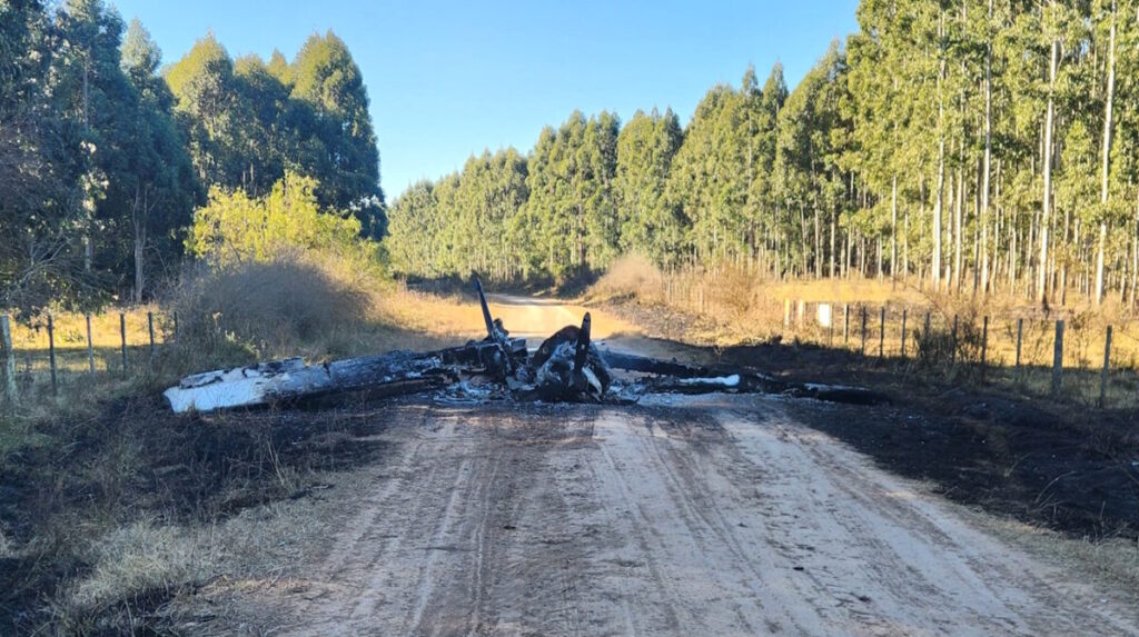Un avión monomotor no identificado fue encontrado incendiado este mediodía, en las cercanías de la colonia de Colonización Aníbal Sampayo, a la altura del kilómetro 78 de la Ruta 26, en la zona de Gallinal.