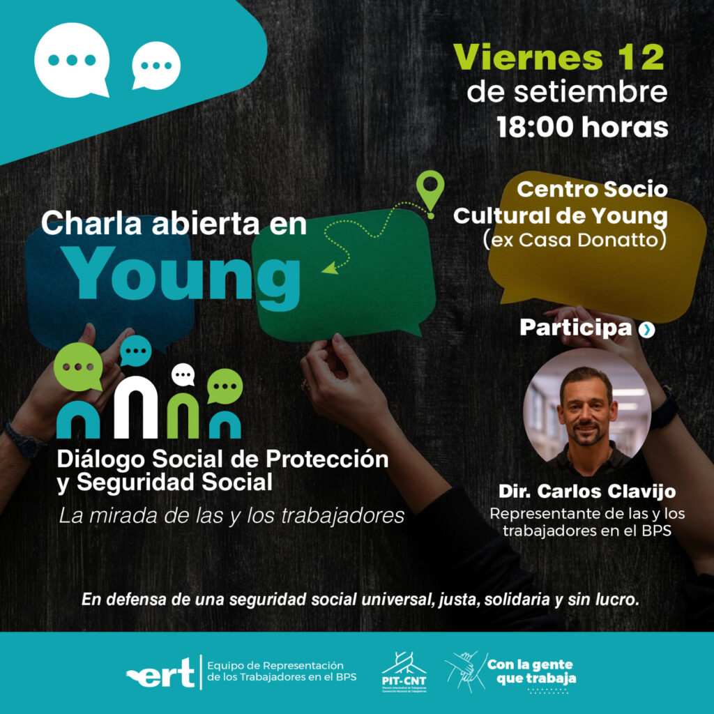 Este viernes 12 de septiembre se llevará a cabo en Young una charla abierta organizada por el Equipo de Representación de Trabajadores (ERT), en el marco de un intercambio sobre “Diálogo Social de Protección y Seguridad Social”.