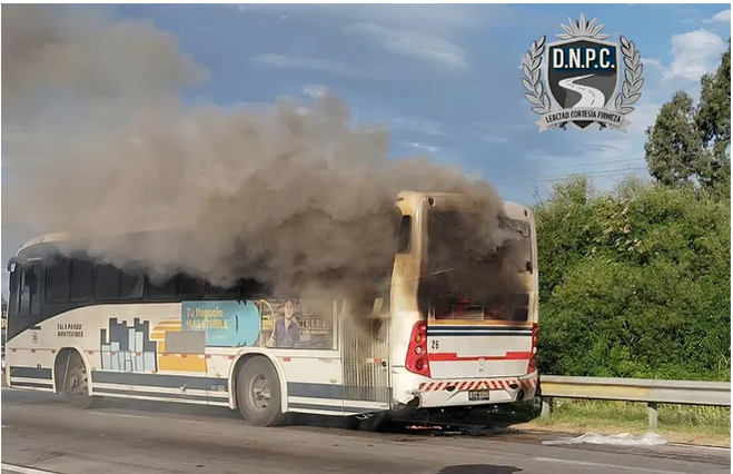 Un ómnibus se prendió fuego en la tarde de este miércoles en la ruta 8, a la altura del kilómetro 23, en la zona de Los Aromos.